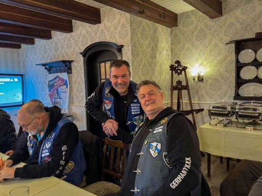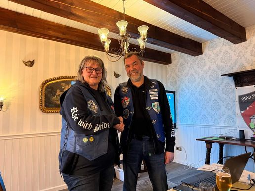 Schließlich wurde auch Tanja für ihre zahlreichen Nähaktionen für die Vereinsmitglieder und deren Kutten gedankt; dafür überreichte ihr Maikl ein kleines Präsent als Dankeschön des Vereins.